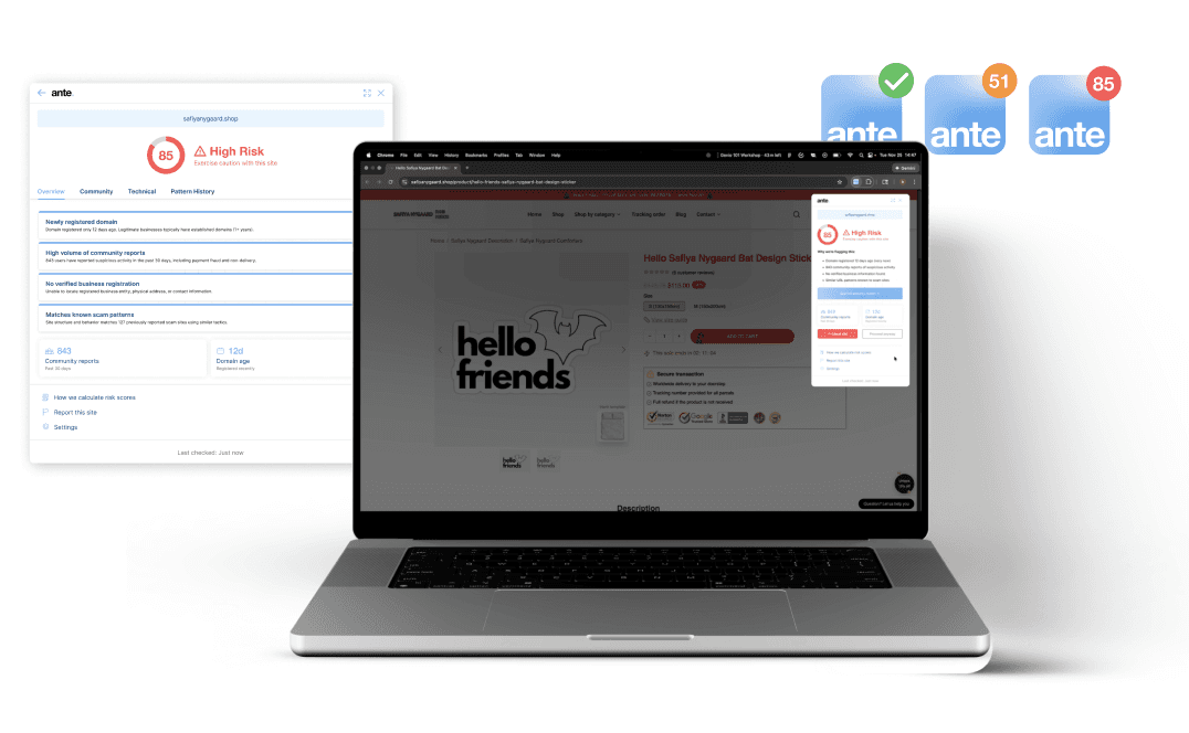 anteFlare 在你购物时实时扫描页面。